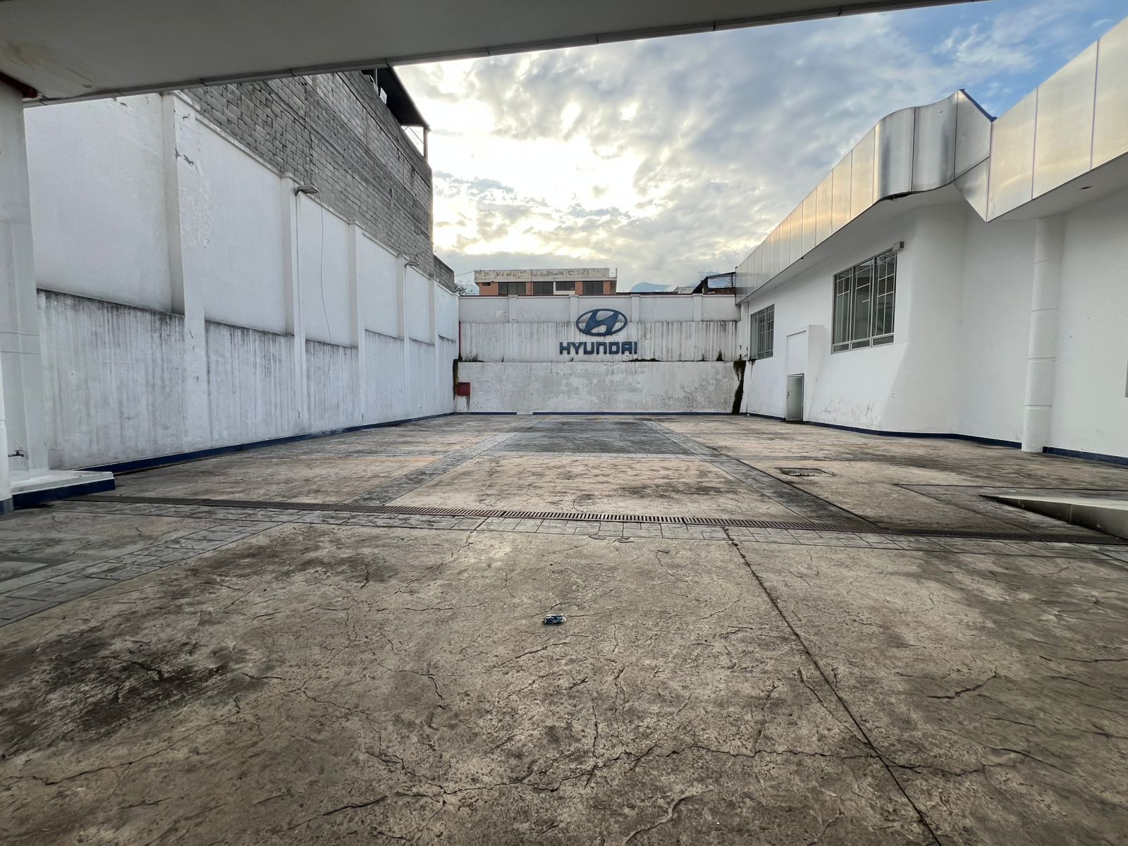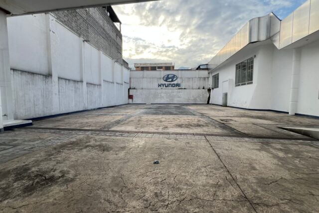 -Showroom y área de ventas sobre la Av. 10 de Agosto, con una fachada de gran impacto comercial y un patio principal para exhibición y parqueadero de visitas