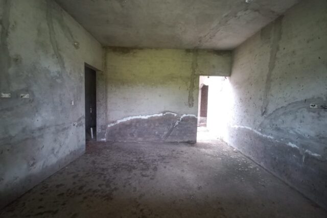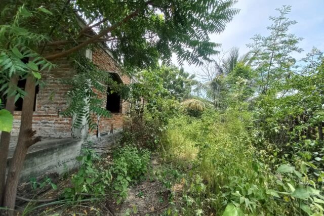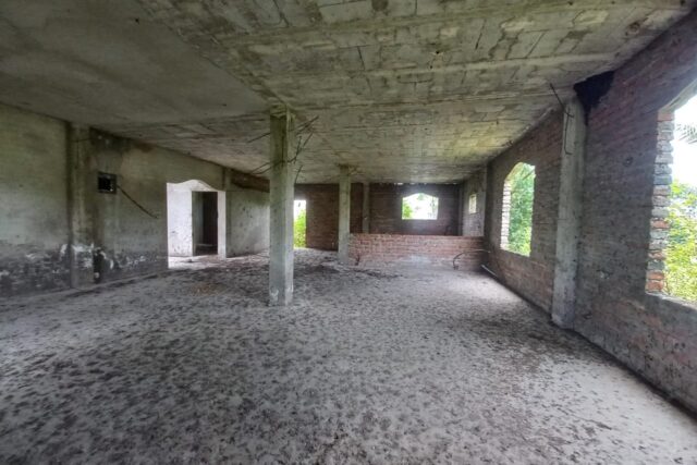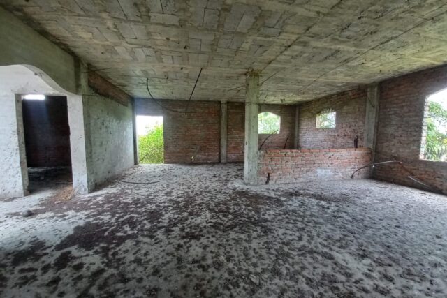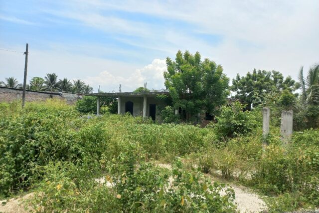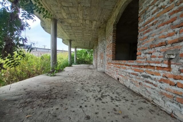El terreno tiene una construcción levantada en gris.
